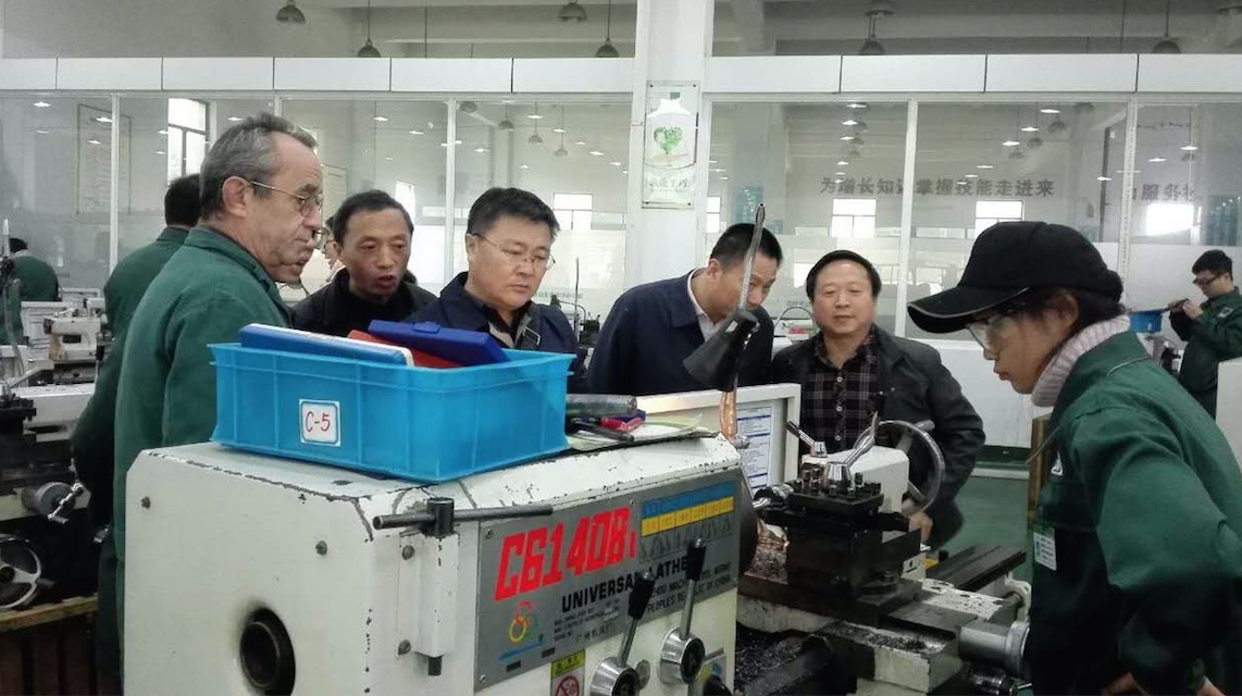 外教漢斯介紹學(xué)生鉗工操作