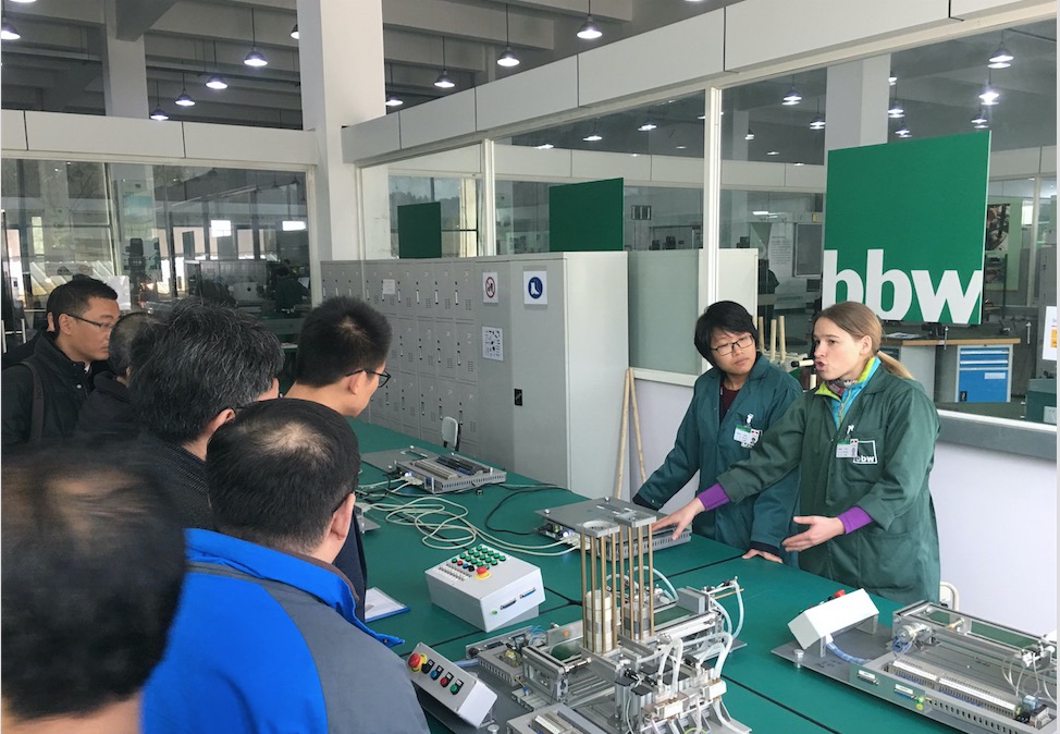 緊接著是蘇州高等職業(yè)技術(shù)學(xué)院中德技能培訓(xùn)中心項(xiàng)目參觀。該中心由蘇州高等職業(yè)技術(shù)學(xué)校和德國(guó)bbw教育集團(tuán)共建,主要培養(yǎng)機(jī)電一體化和數(shù)控技術(shù)專業(yè)人才。下面是參觀的部分照片。